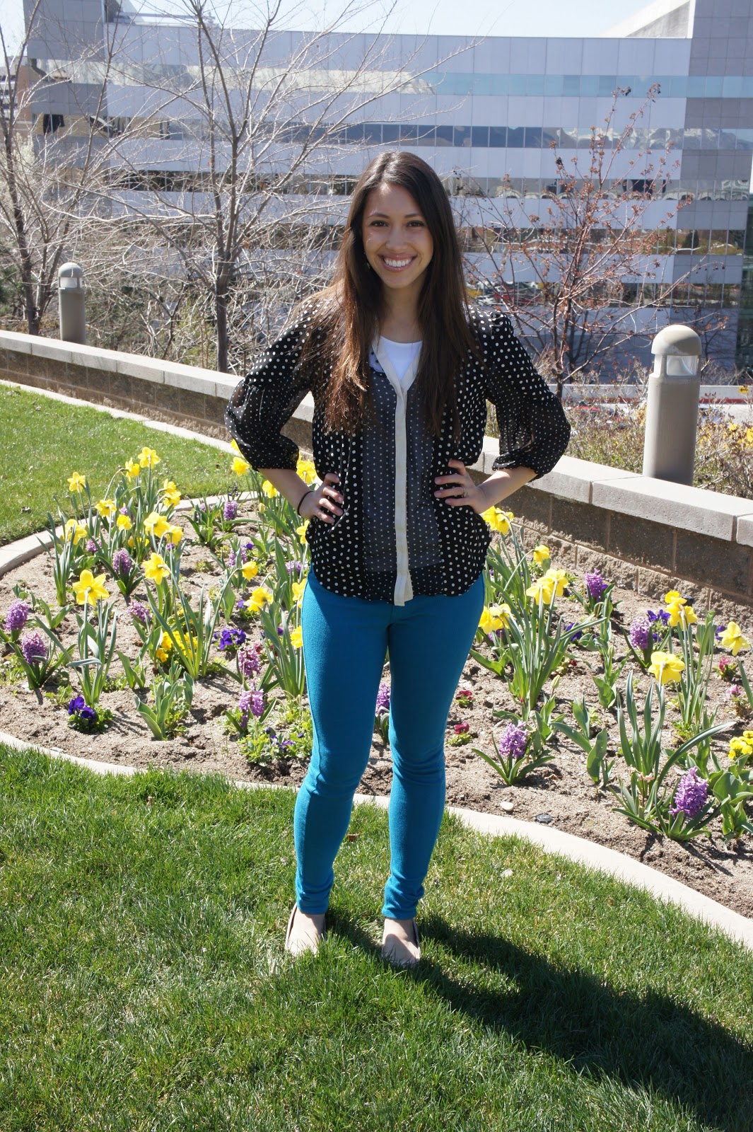 I wore this outfit to our end of the year party for my job at LDS Philanthropies. However, the party was right in the midst of finals week so I didn't want to dress too uncomfortably since I had planned on spending the rest of the day in the library. It is finally starting to feel warm again here and so I felt like it was a safe time to pull out the bright pants.